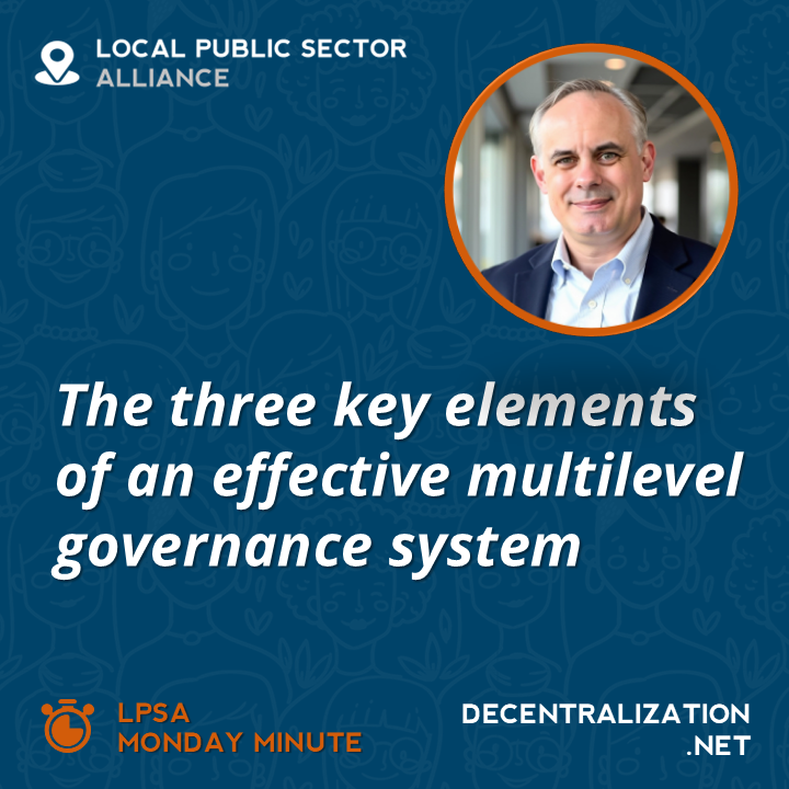Over its first year, LPSA’s Monday Minutes will move from foundations and first principles, to thematic deep dives on issues such as fiscal decentralization, inclusive governance, service delivery, urban development, conflict and fragility, and local climate action, and then to regional perspectives from across the world. The series hopes to feature voices from across LPSA’s working groups and partner institutions, reinforcing a common, experience-based perspective on what makes multilevel governance systems work.