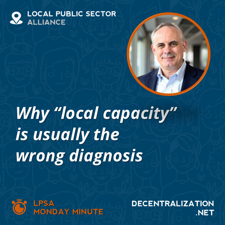 Each LPSA Monday Minute is a short, one-minute explainer for practitioners, policymakers, researchers, and development partners working on decentralization, multilevel governance, and local public sector reform. Each episode focuses on a single idea: a core concept, a recurring challenge, or a lesson from experience. The format is intentionally simple. One minute. One insight. One takeaway.